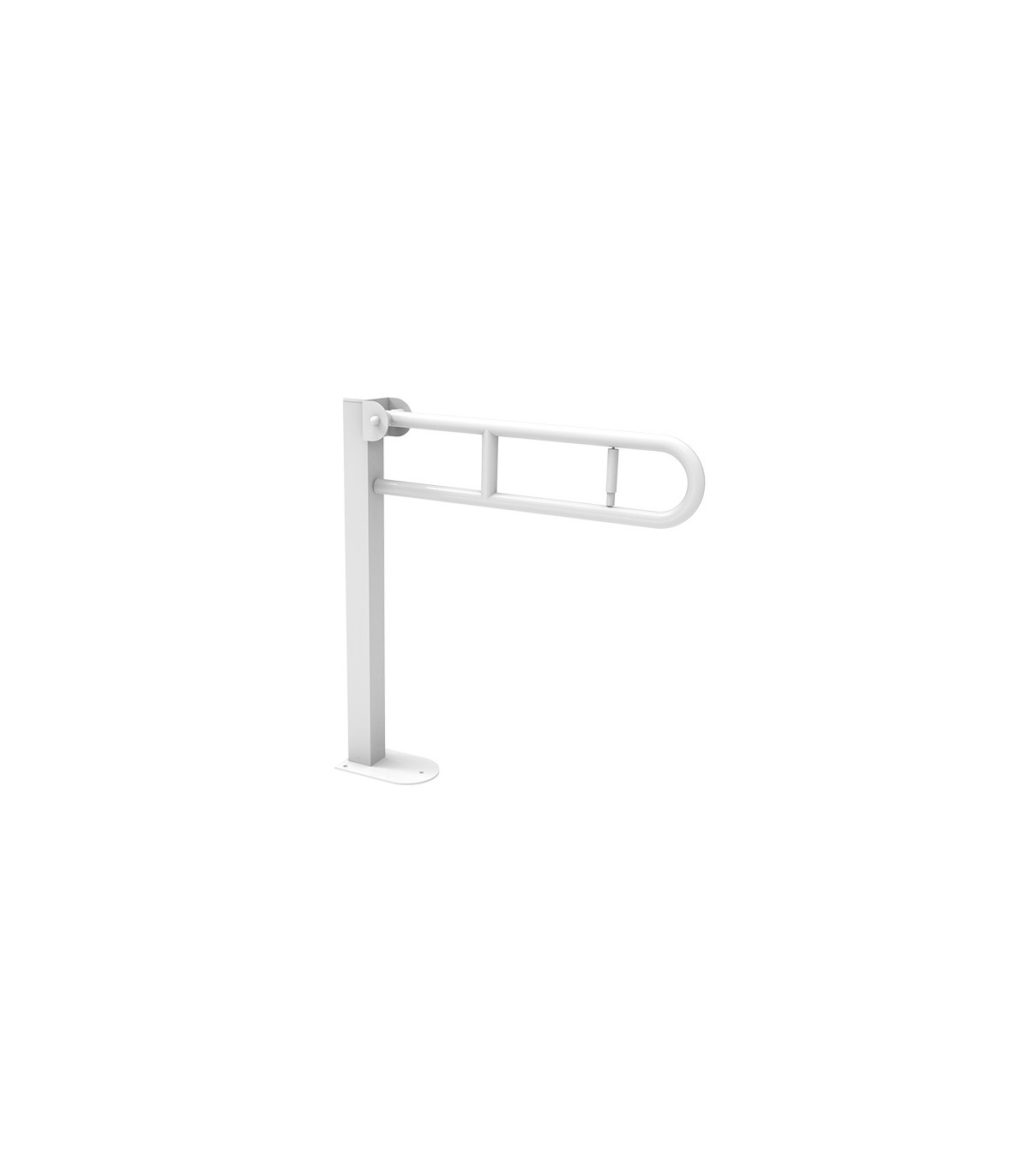 • Fabricada en acero con tratamiento anticorrosión y recubierta con material epoxi-poliéster resistente al desgaste (blanco brillo RAL 9016 y gris brillo RAL 7035: con propiedades antibacterianas de iones plata bio-Goman), completado con: barra de una sola pieza en tubo Ø32x1,5, sin juntas con armadura intermedia soldada, portarrollos, columna de acero de tubo cuadrado 60, altura mm. 800 con placa soldada de 3 agujeros para fijación al suelo, pasador de unión Ø8, sistema de freno en material sintético termoplástico.