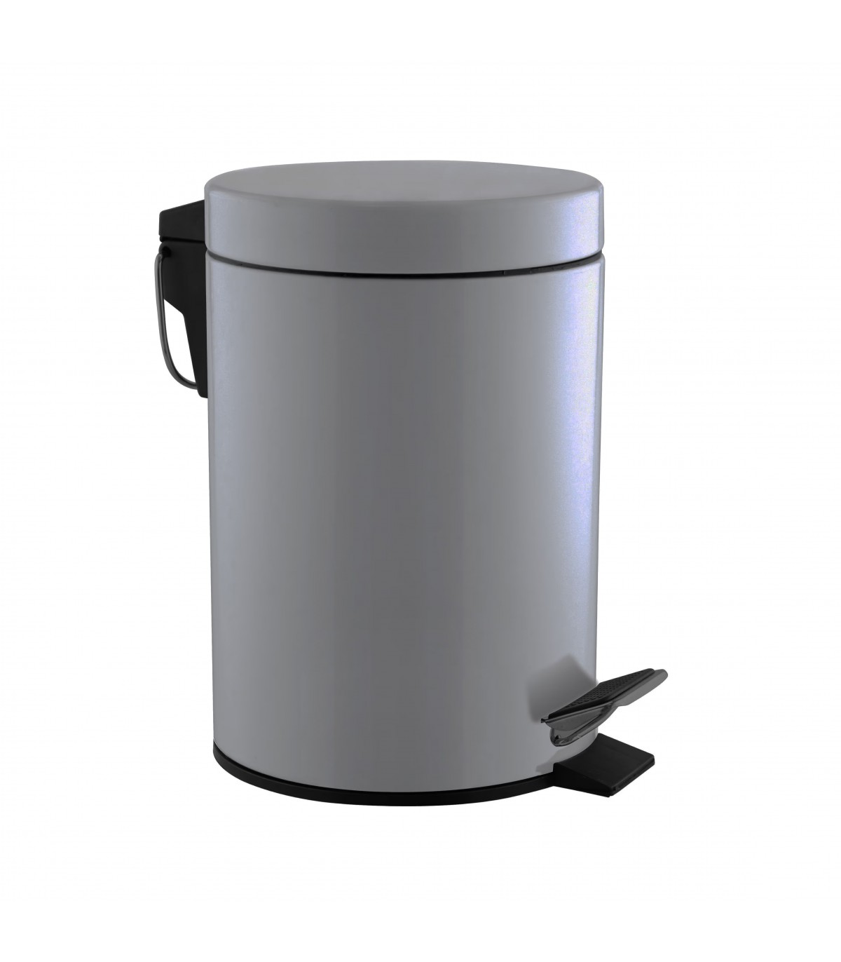 • Cubos sanitarios circulares para interior, de 5L de capacidad, fabricados con acero inoxidable AISI 410, acabado satinado y accionados mediante pedal, para apoyarse directamente en el suelo.