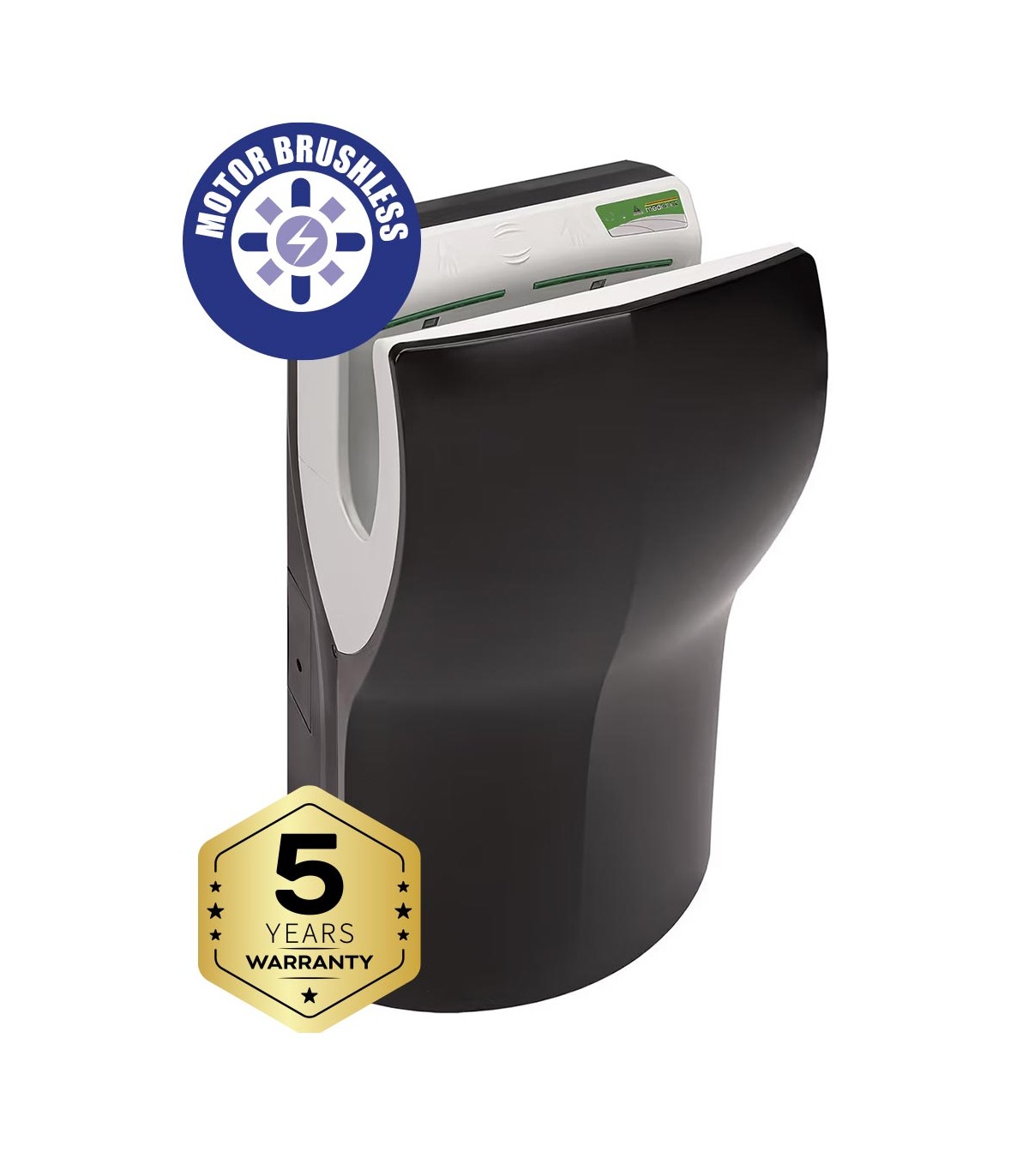 Secador de manos automático Dualflow Plus con motor sin escobillas y carcasa de ABS, acabado negro. Códigos: M24AB, M24AB-I, M24AB-DES y M24AB-DES-I